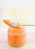 Et puis il y a ce petit pot de panais que tu t'es fait carrément chier à faire. Et que le nain t'a recraché au visage. Là, tu as décidé de jeter l'éponge et de craquer pour un petit pot "patate douce bio" lors de tes courses au Carrouf'. Puis pour un haricot vert. Et un épinard.